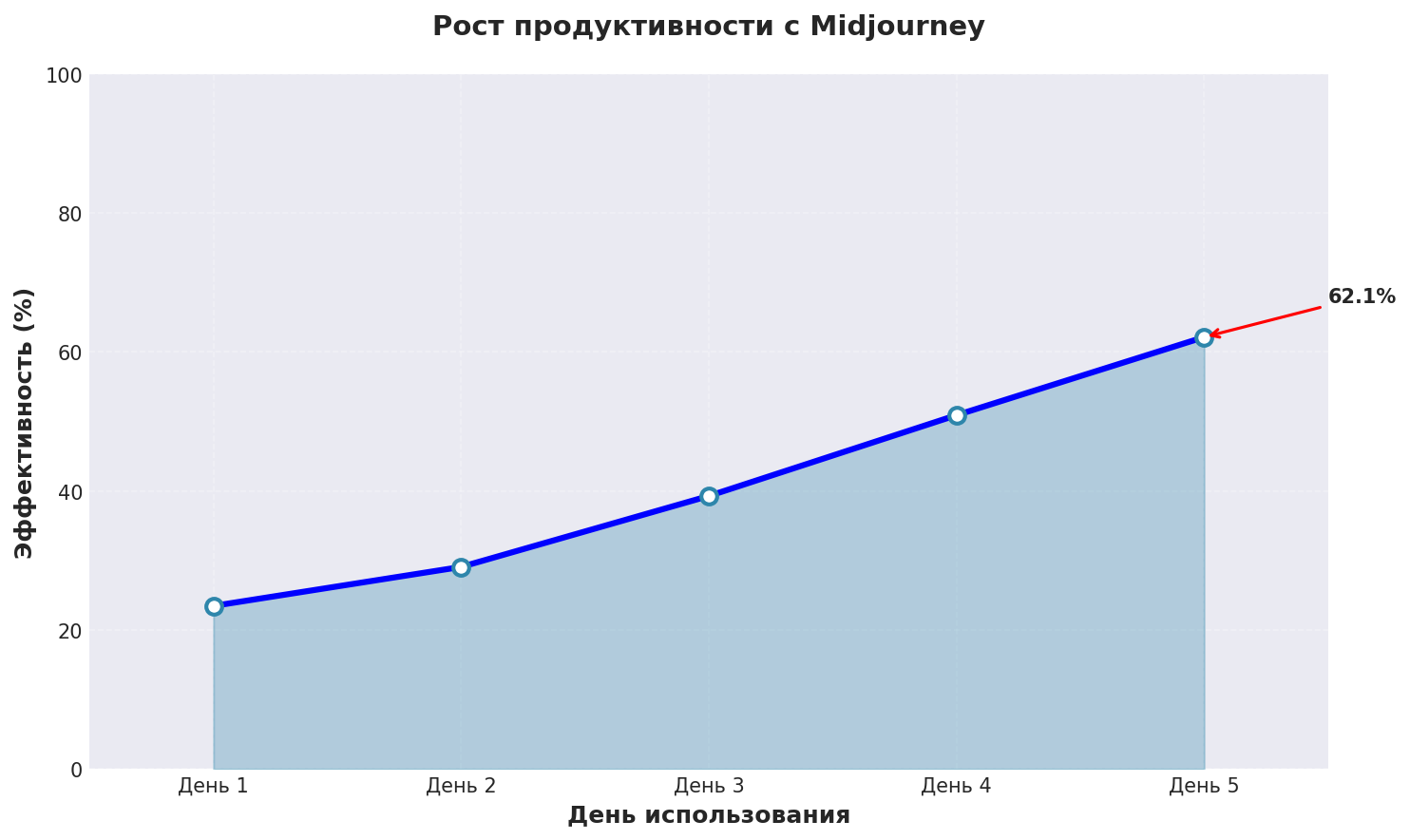 График показывает реальный рост качества изображений при использовании всех 5 способов с Midjourney