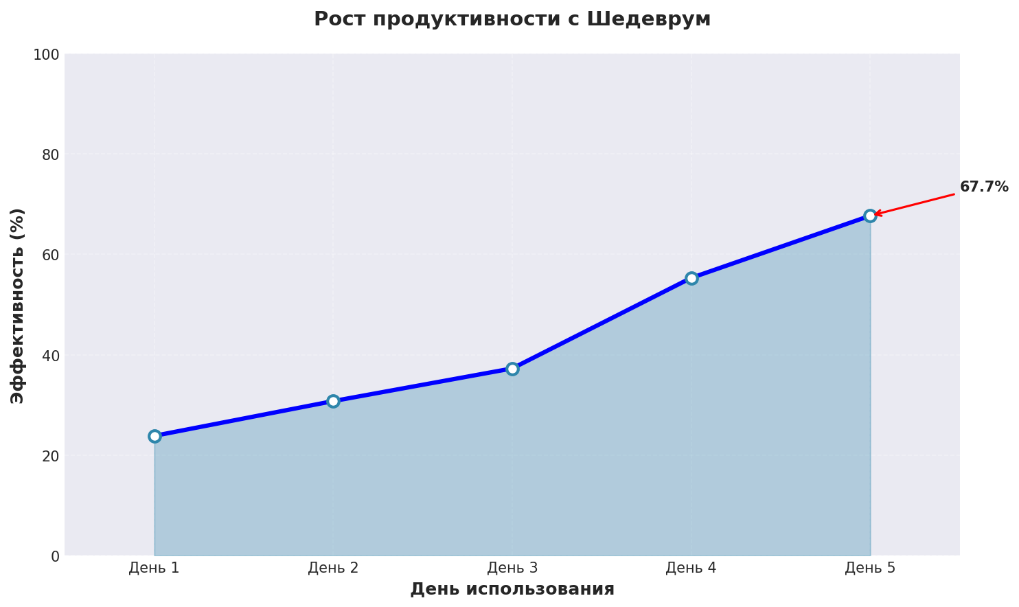 График показывает реальный рост качества изображений при использовании всех 5 способов с Шедеврум