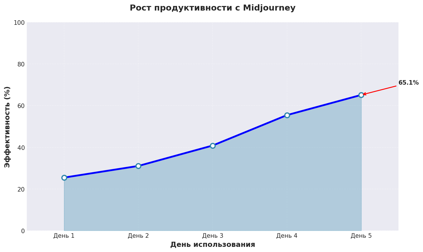 График показывает реальный рост качества изображений при использовании всех 5 способов с Midjourney