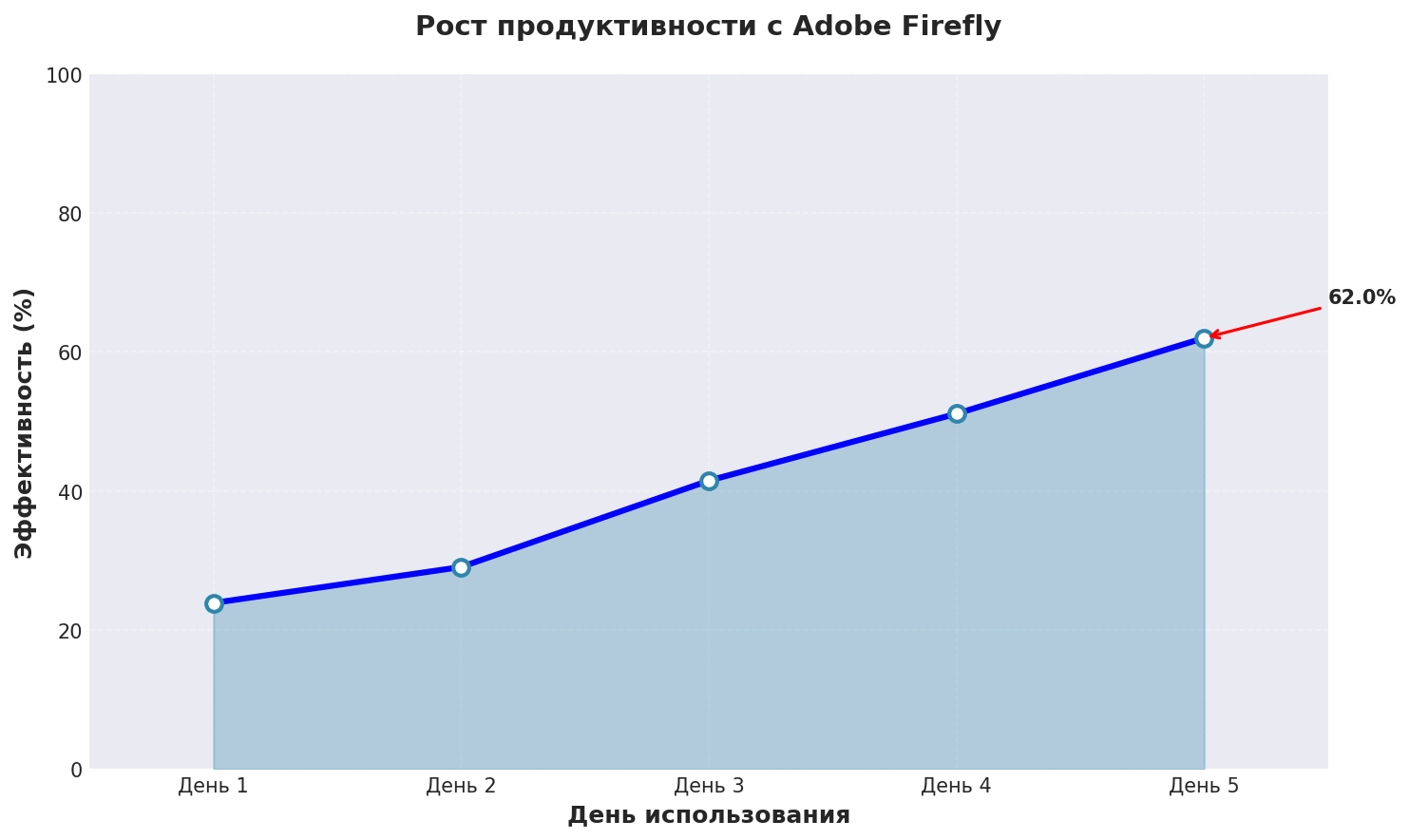 График показывает реальный рост качества изображений при использовании всех 5 способов с Adobe Firefly