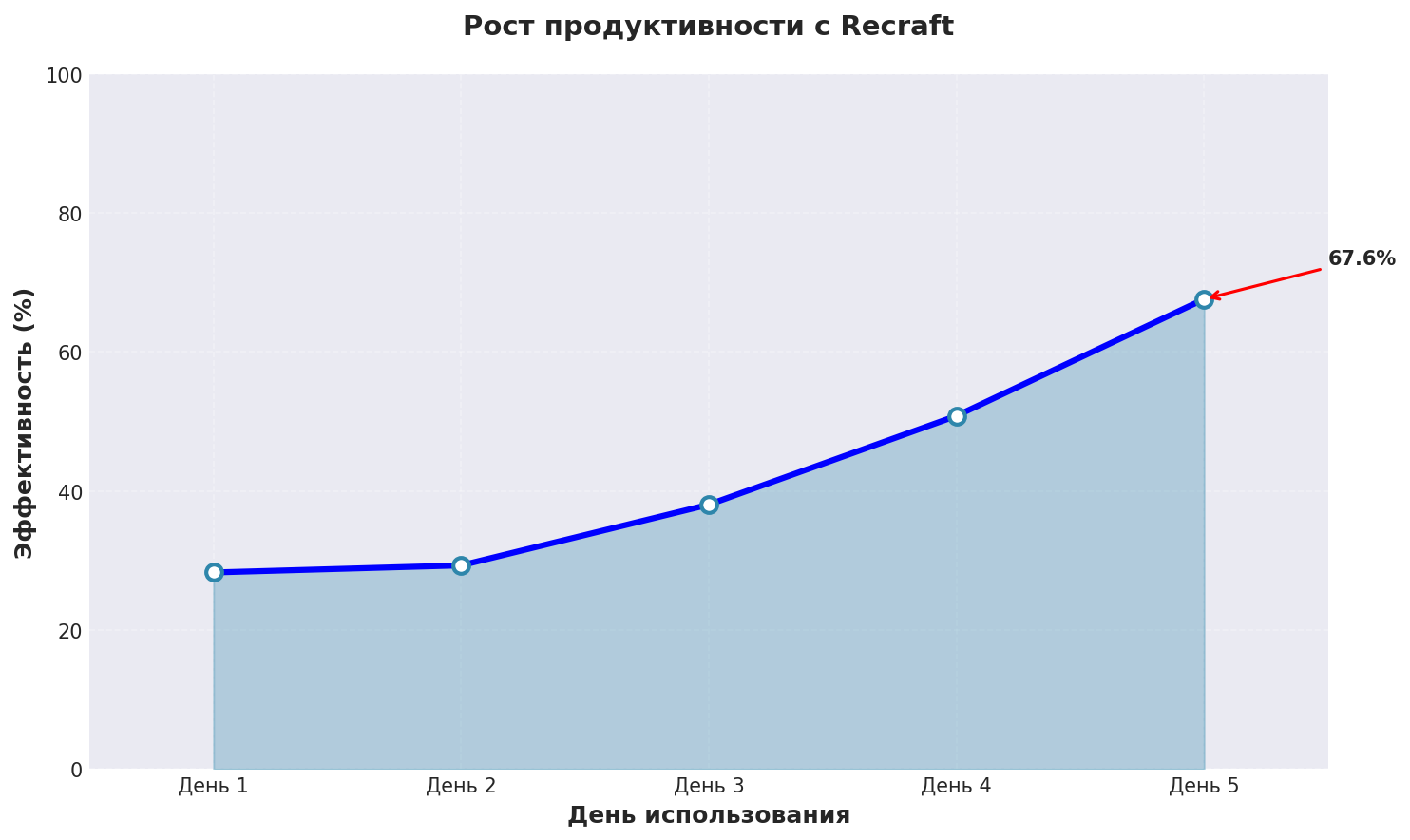 График показывает реальный рост качества изображений при использовании всех 5 способов с Recraft
