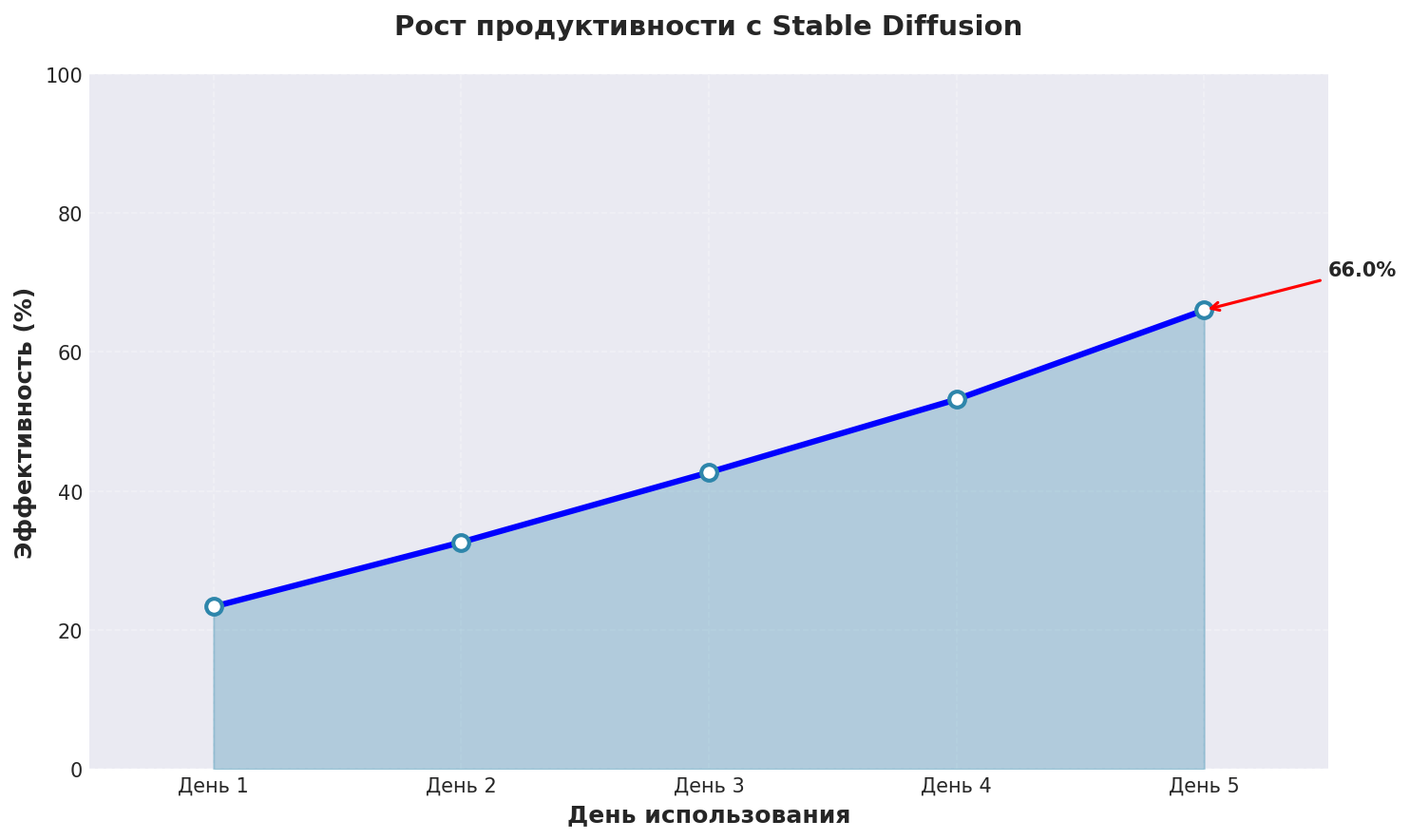 График показывает реальный рост качества изображений при использовании всех 5 способов с Stable Diffusion