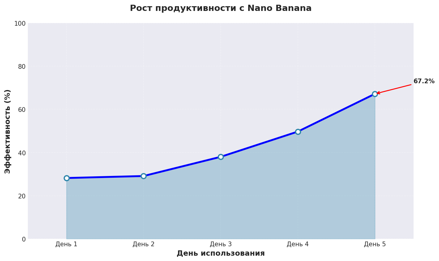 График показывает реальный рост качества изображений при использовании всех 5 способов с Nano Banana