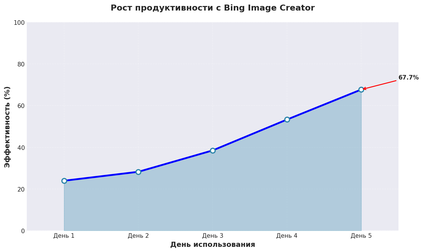 График показывает реальный рост качества изображений при использовании всех 5 способов с Bing Image Creator