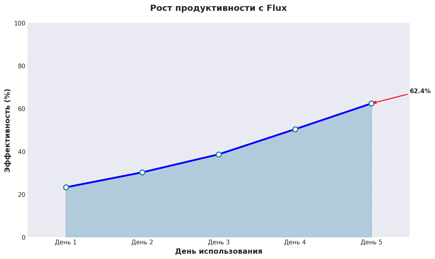 График показывает реальный рост качества изображений при использовании всех 5 способов с Flux