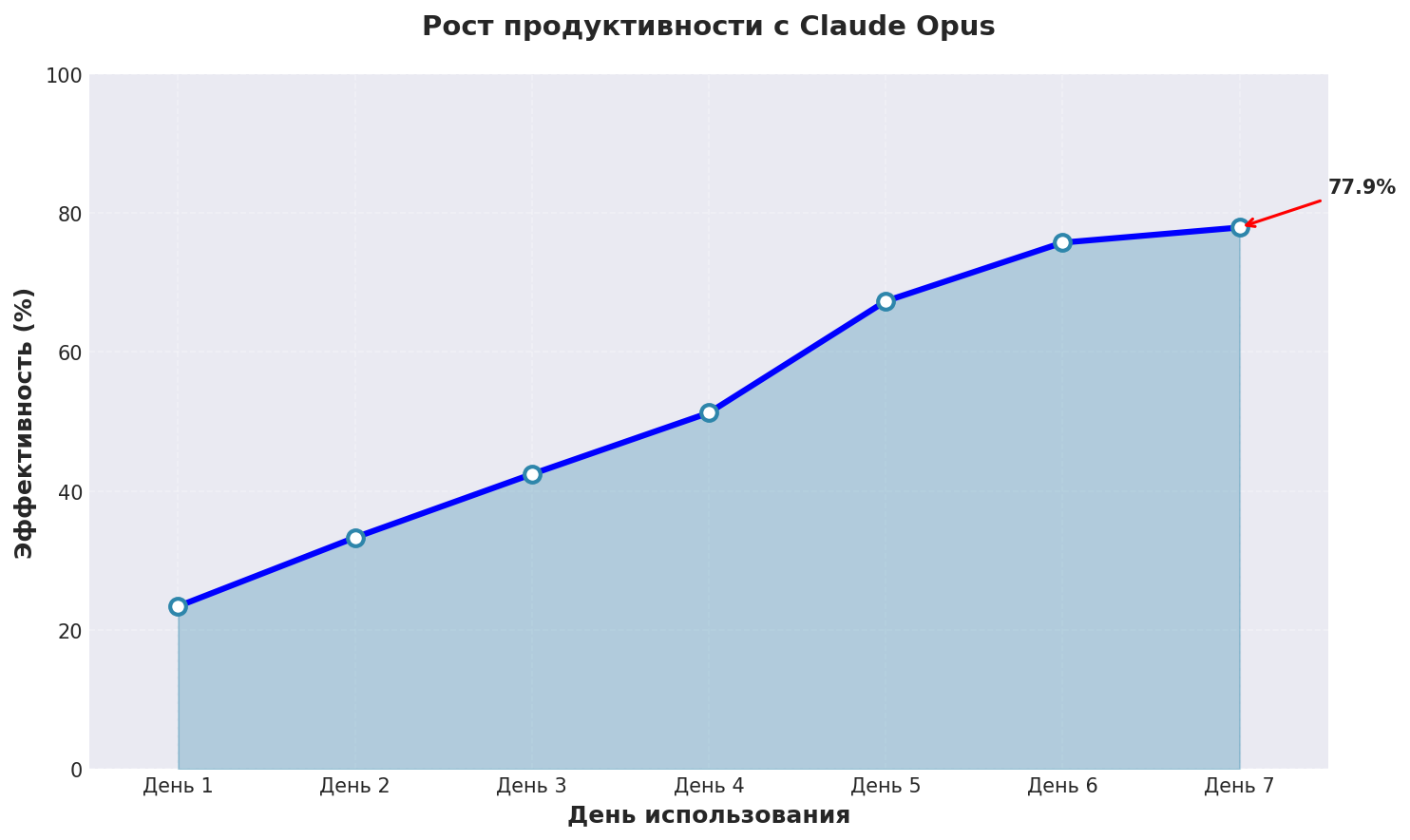 График показывает реальный рост эффективности бесплатная нейросеть для написания при использовании Claude Opus с применением описанных техник