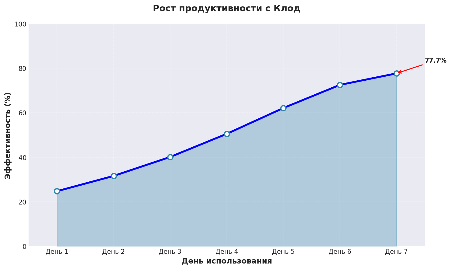 График показывает реальный рост эффективности написать текст нейросетью без регистрации при использовании Клод с применением описанных техник