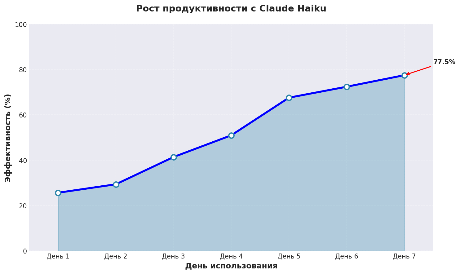 График показывает реальный рост эффективности нейросеть написать текст бесплатно без регистрации при использовании Claude Haiku с применением описанных техник