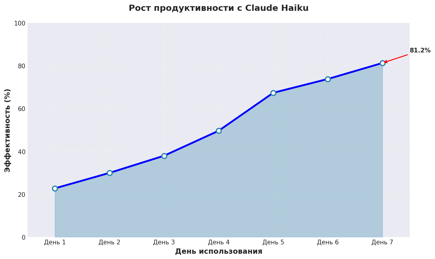 График показывает реальный рост эффективности нейросеть тексты на русском онлайн при использовании Claude Haiku с применением описанных техник