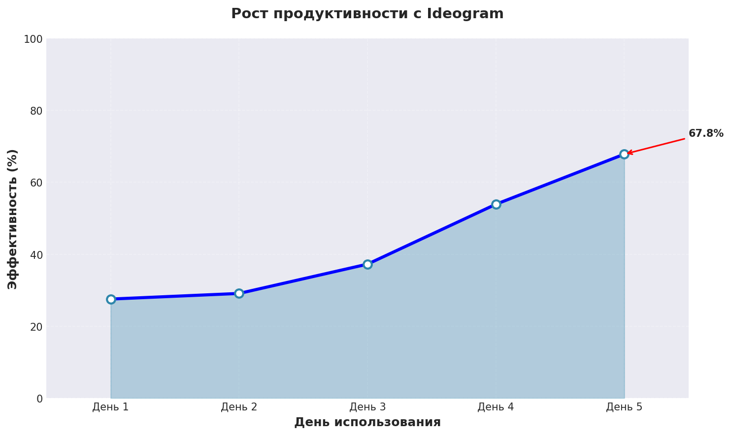 График показывает реальный рост качества изображений при использовании всех 5 способов с Ideogram