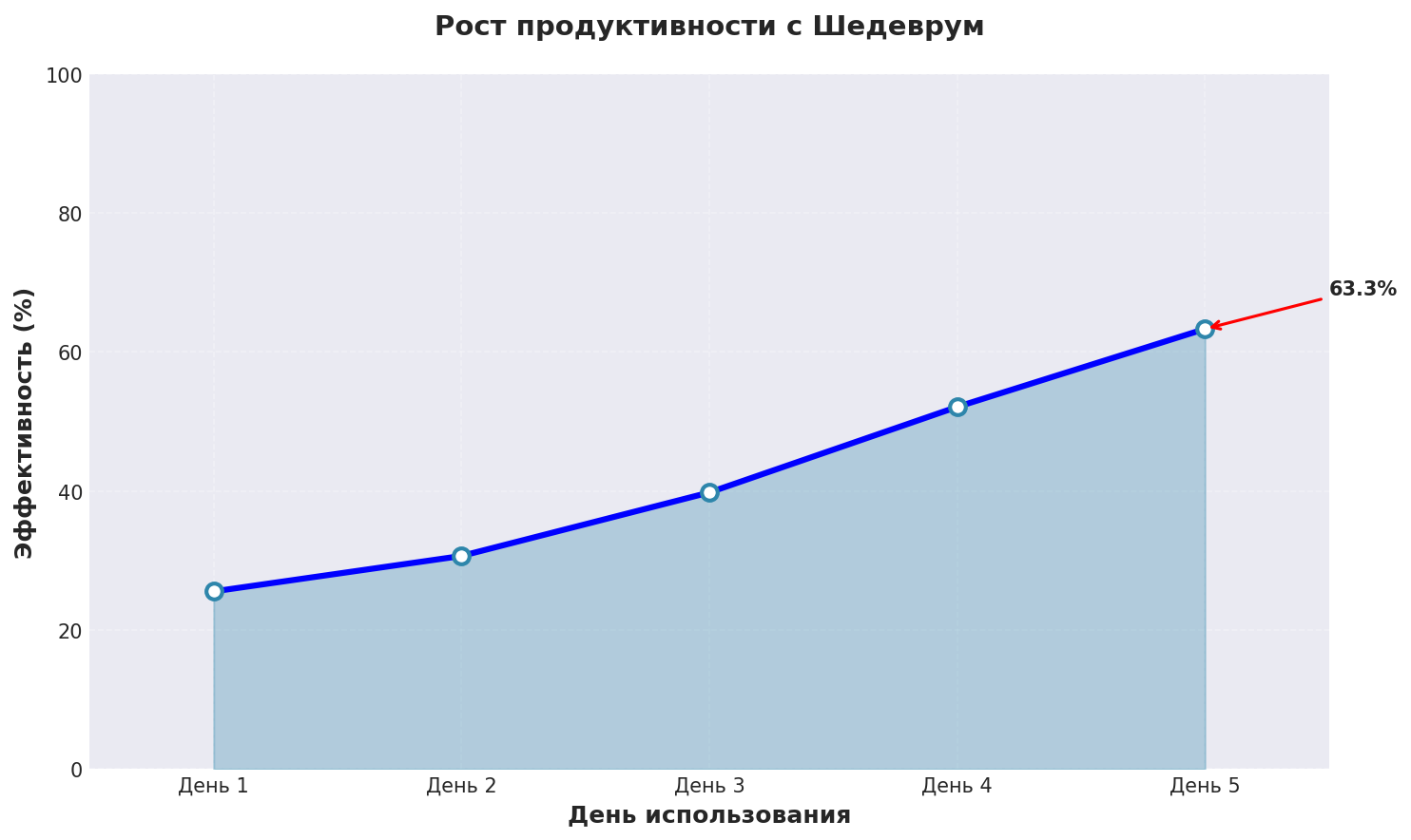 График показывает реальный рост качества изображений при использовании всех 5 способов с Шедеврум