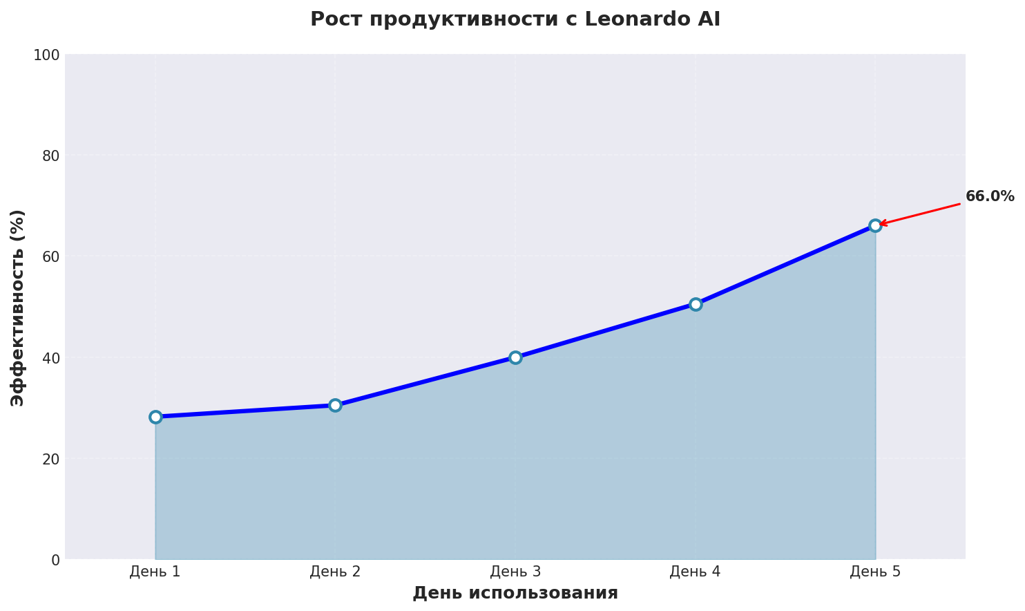 График показывает реальный рост качества изображений при использовании всех 5 способов с Leonardo AI
