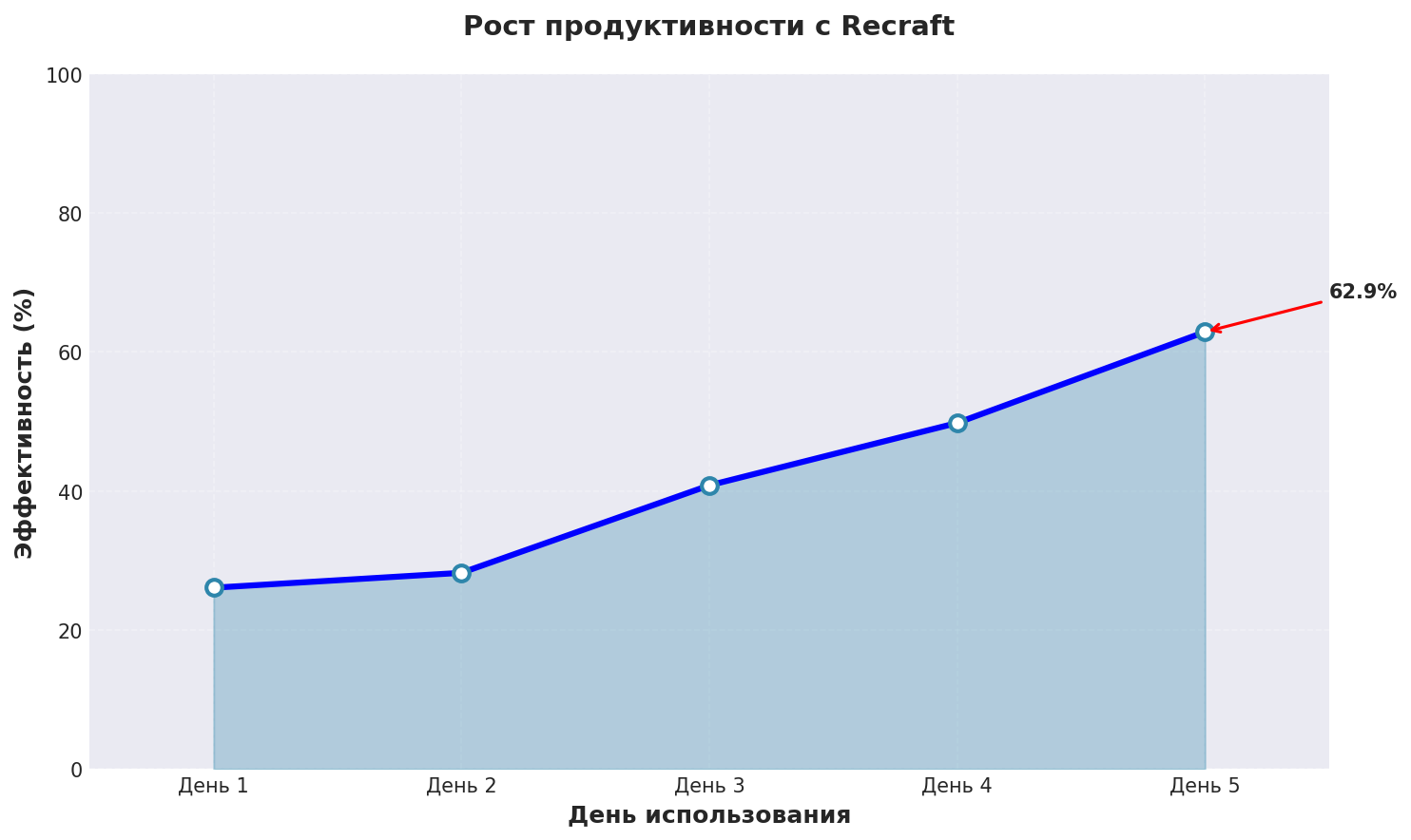 График показывает реальный рост качества изображений при использовании всех 5 способов с Recraft