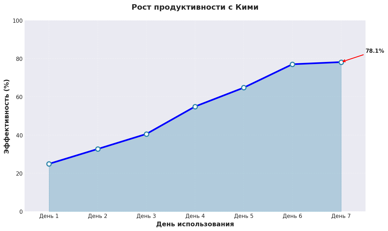 График показывает реальный рост эффективности чат джипити нейросеть бесплатно при использовании Кими с применением описанных техник