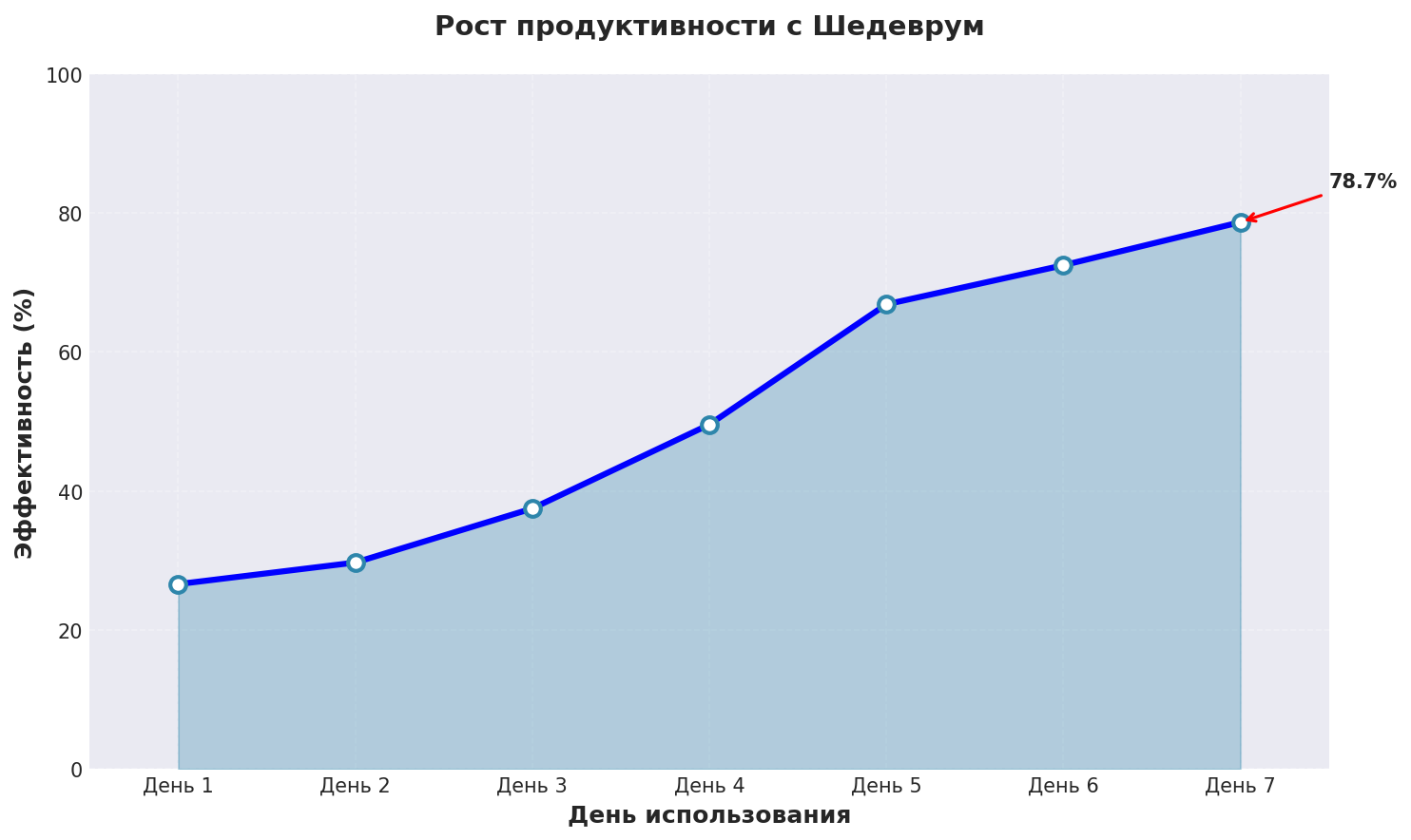 График показывает реальный рост эффективности нейросеть сгенерировать текст бесплатно при использовании Шедеврум с применением описанных техник