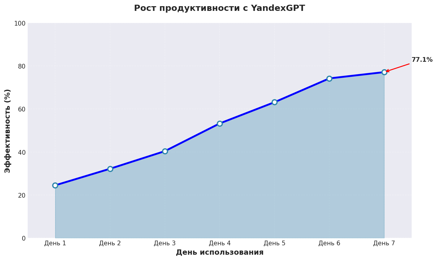График показывает реальный рост эффективности нейросеть скачать бесплатно на русском при использовании YandexGPT с применением описанных техник