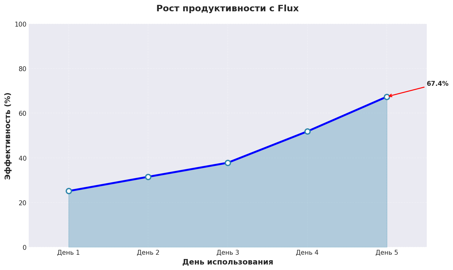 График показывает реальный рост качества изображений при использовании всех 5 способов с Flux