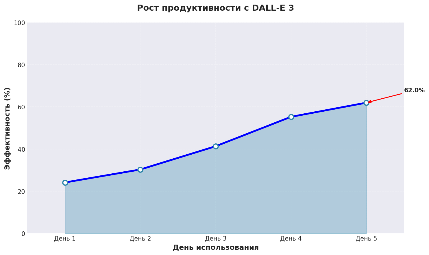 График показывает реальный рост качества изображений при использовании всех 5 способов с DALL-E 3