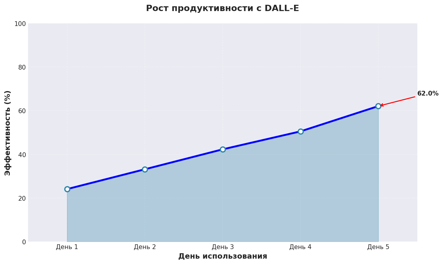 График показывает реальный рост качества изображений при использовании всех 5 способов с DALL-E