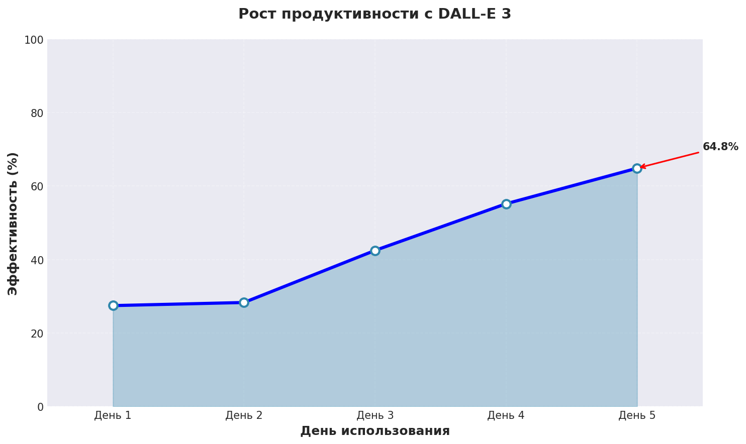 График показывает реальный рост качества изображений при использовании всех 5 способов с DALL-E 3
