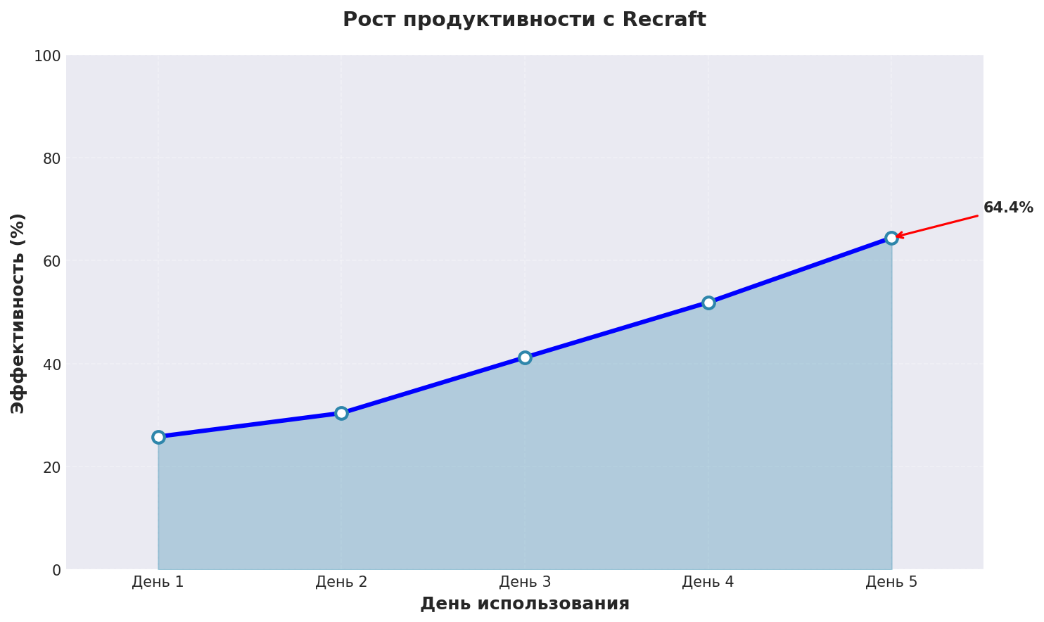 График показывает реальный рост качества изображений при использовании всех 5 способов с Recraft