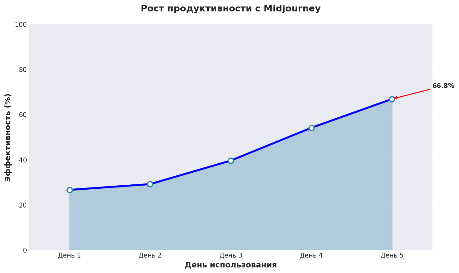 График показывает реальный рост качества изображений при использовании всех 5 способов с Midjourney