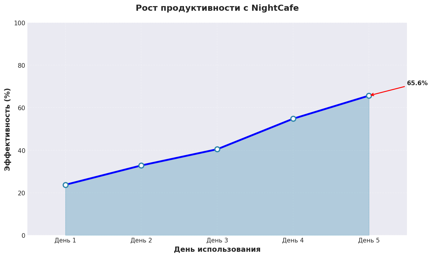 График показывает реальный рост качества изображений при использовании всех 5 способов с NightCafe