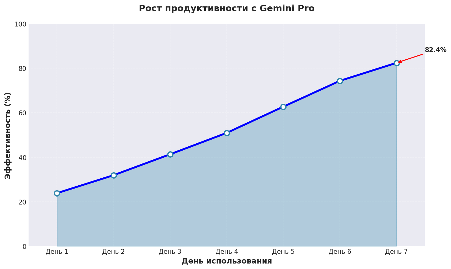 График показывает реальный рост эффективности чат дпт нейросеть при использовании Gemini Pro с применением описанных техник