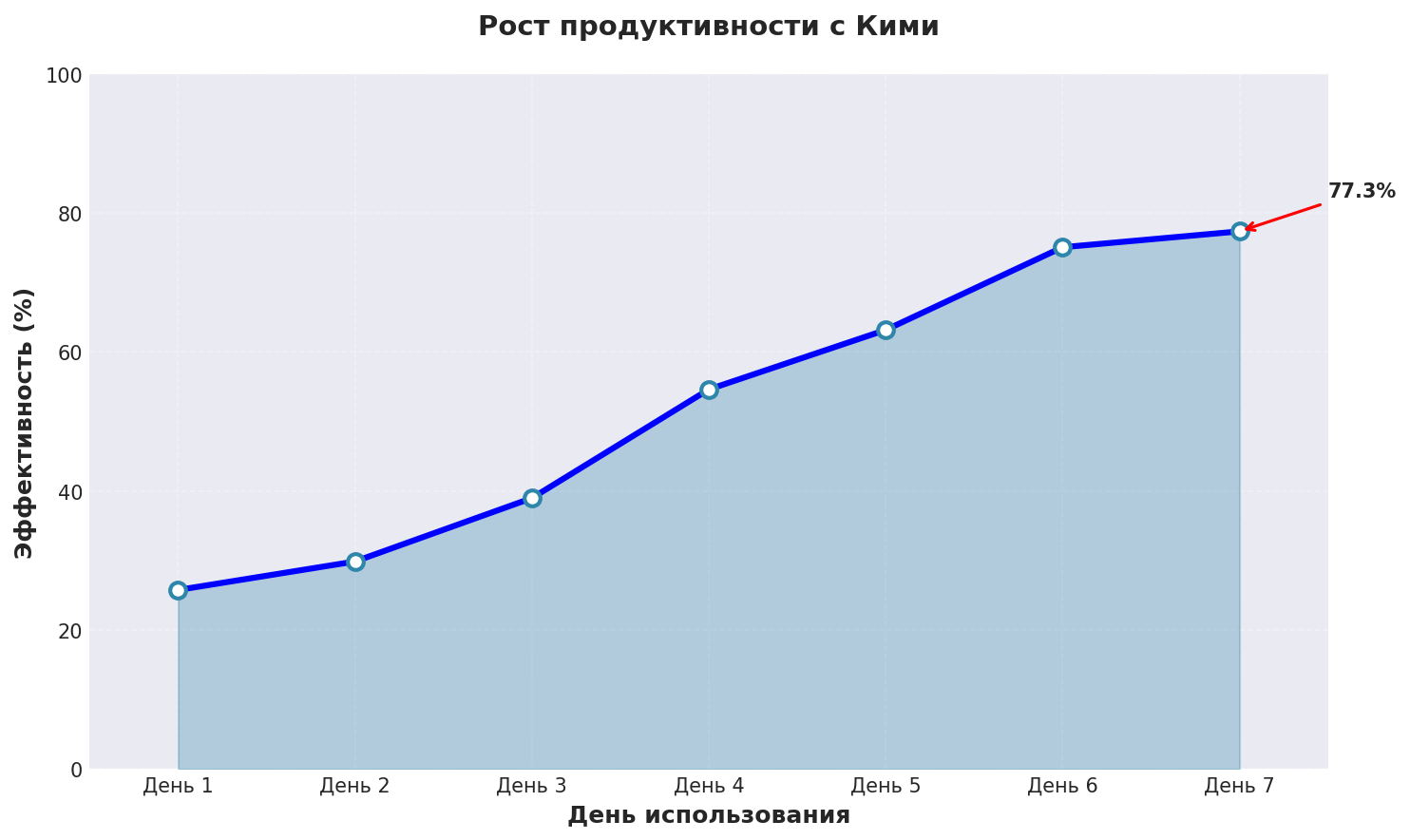 График показывает реальный рост эффективности нейросеть для генерации текста при использовании Кими с применением описанных техник