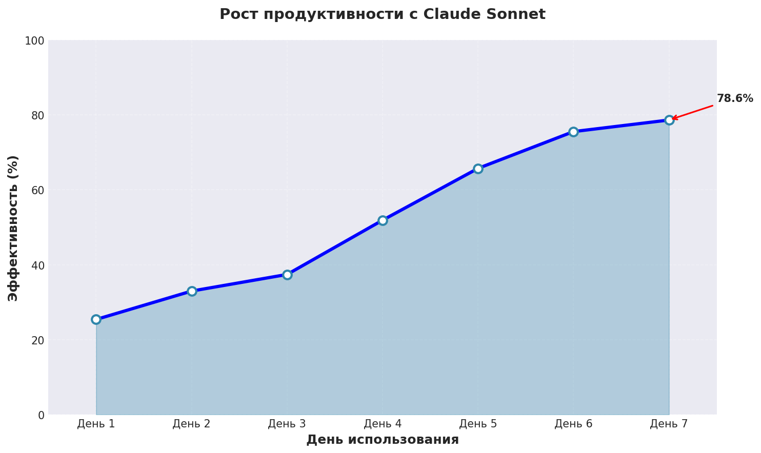 График показывает реальный рост эффективности нейросеть создать описание при использовании Claude Sonnet с применением описанных техник