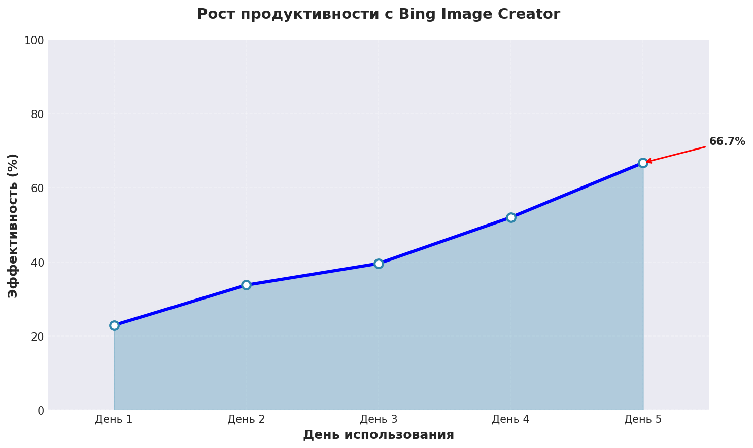 График показывает реальный рост качества изображений при использовании всех 5 способов с Bing Image Creator