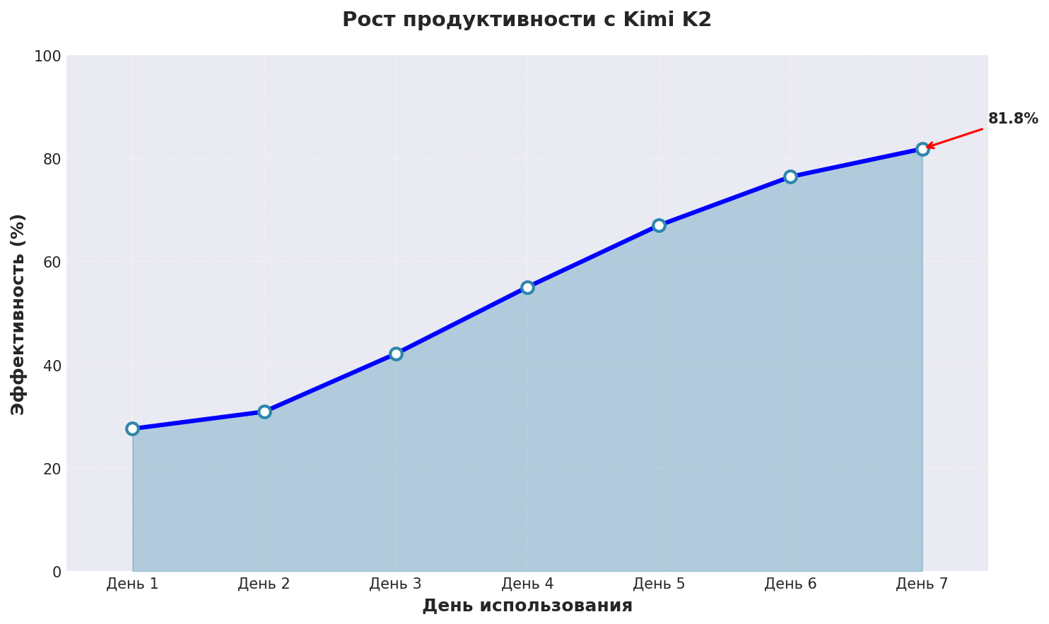 График показывает реальный рост эффективности нейросеть для текста бесплатно без регистрации при использовании Kimi K2 с применением описанных техник