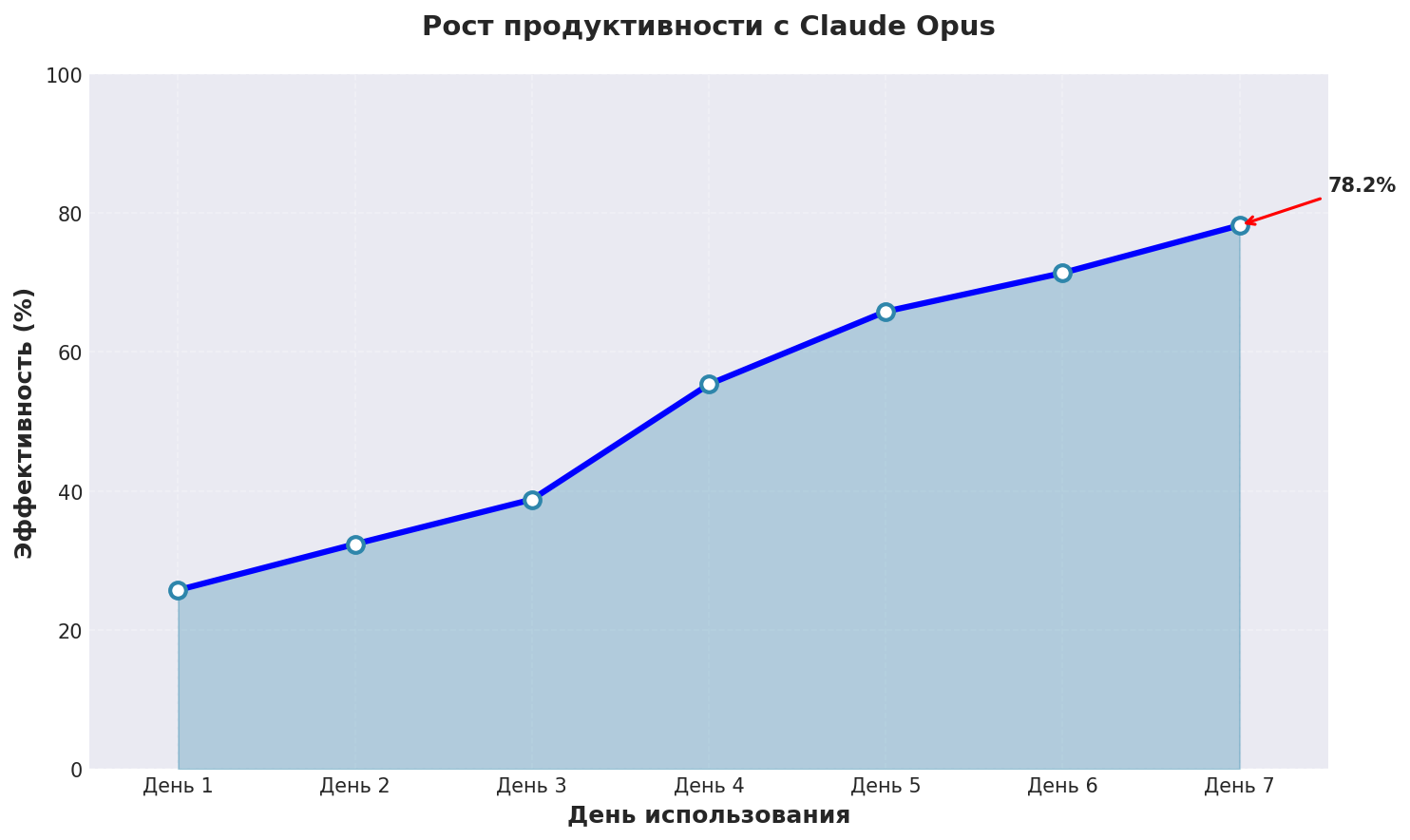 График показывает реальный рост эффективности бесплатная нейросеть для создания текста при использовании Claude Opus с применением описанных техник