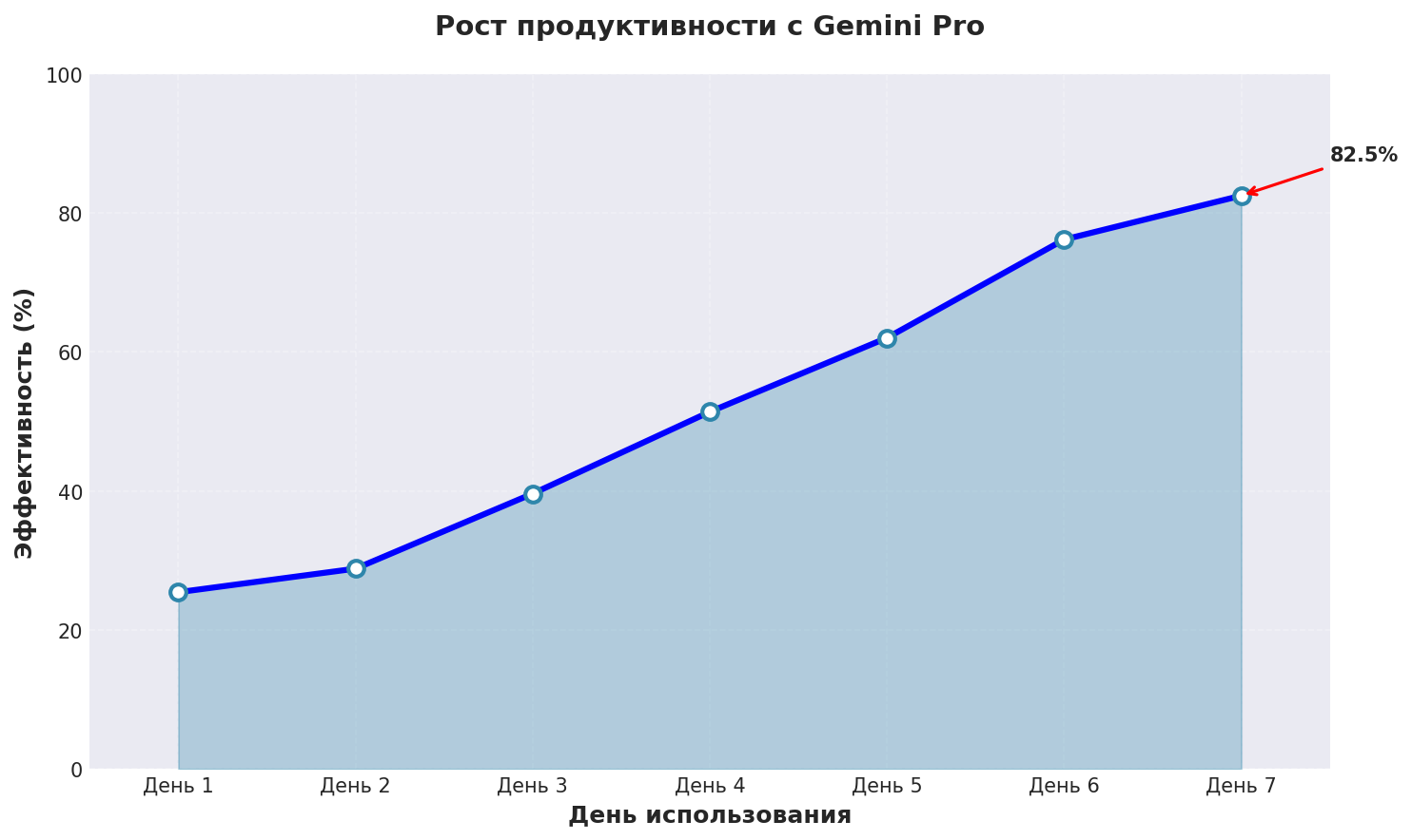 График показывает реальный рост эффективности нейросеть для текста бесплатно без регистрации при использовании Gemini Pro с применением описанных техник