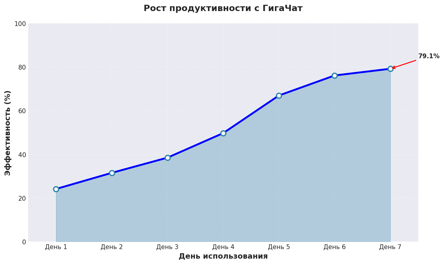 График показывает реальный рост эффективности создать текст нейросеть онлайн при использовании ГигаЧат с применением описанных техник