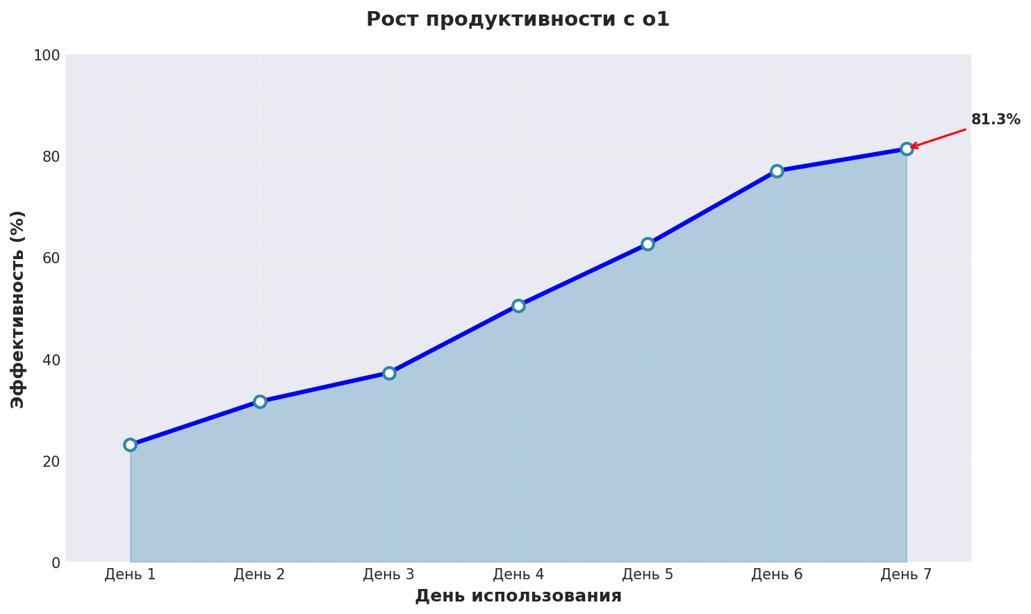 График показывает реальный рост эффективности запросы в нейросеть при использовании o1 с применением описанных техник