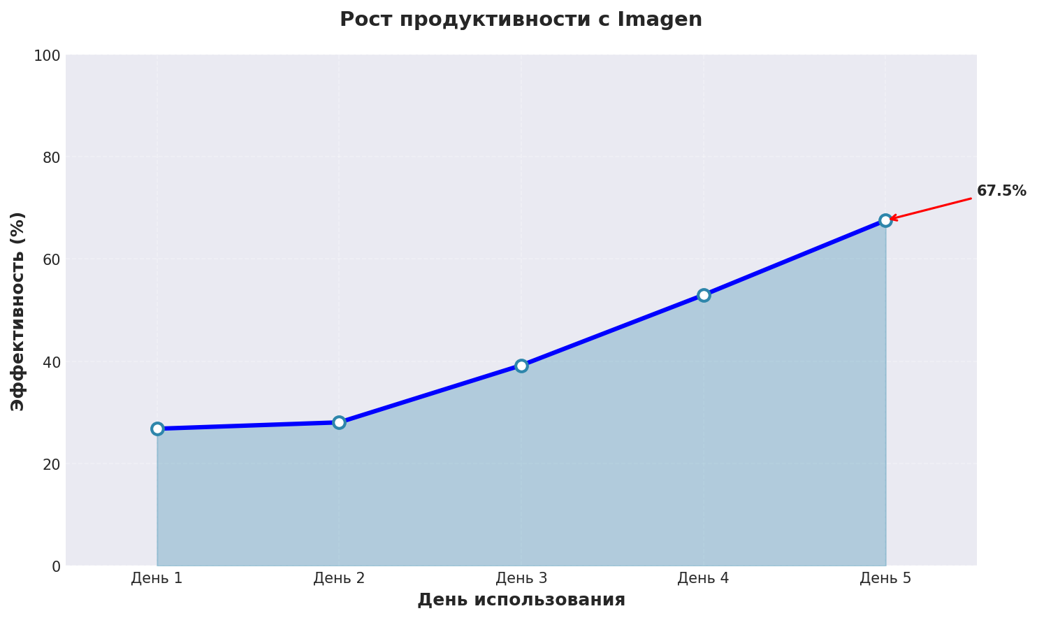 График показывает реальный рост качества изображений при использовании всех 5 способов с Imagen