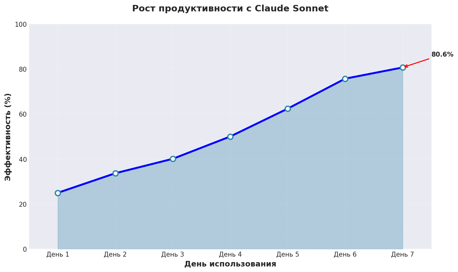 График показывает реальный рост эффективности создать описание нейросеть бесплатно при использовании Claude Sonnet с применением описанных техник