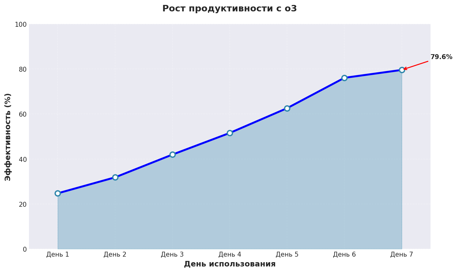 График показывает реальный рост эффективности чат бот нейросеть при использовании o3 с применением описанных техник