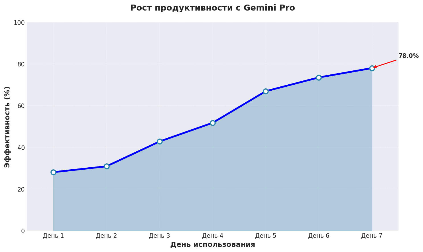График показывает реальный рост эффективности нейросеть чат на русском при использовании Gemini Pro с применением описанных техник