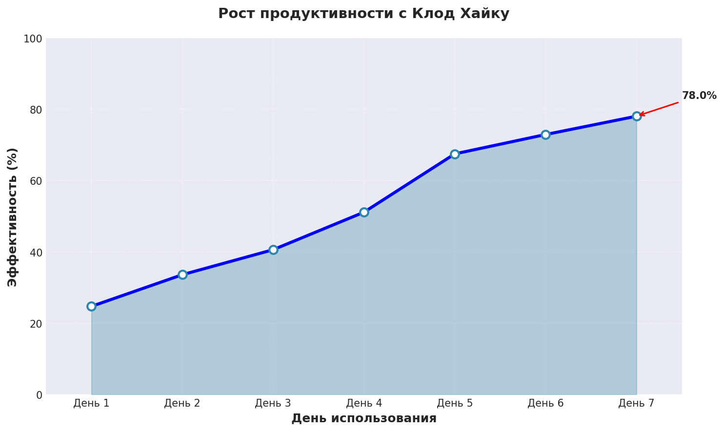 График показывает реальный рост эффективности нейросеть письмо при использовании Клод Хайку с применением описанных техник
