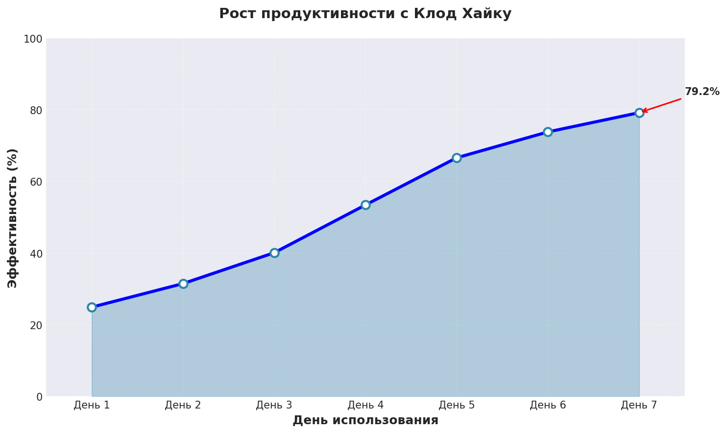 График показывает реальный рост эффективности скачать нейросеть на пк при использовании Клод Хайку с применением описанных техник