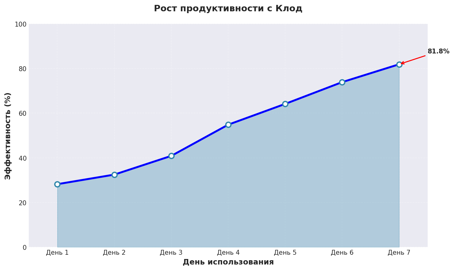 График показывает реальный рост эффективности создать описание нейросеть бесплатно при использовании Клод с применением описанных техник
