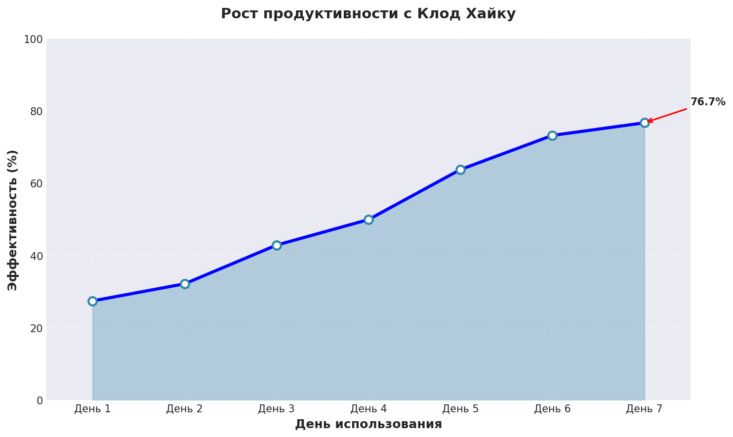 График показывает реальный рост эффективности текст с нейросетью онлайн бесплатно без регистрации при использовании Клод Хайку с применением описанных техник