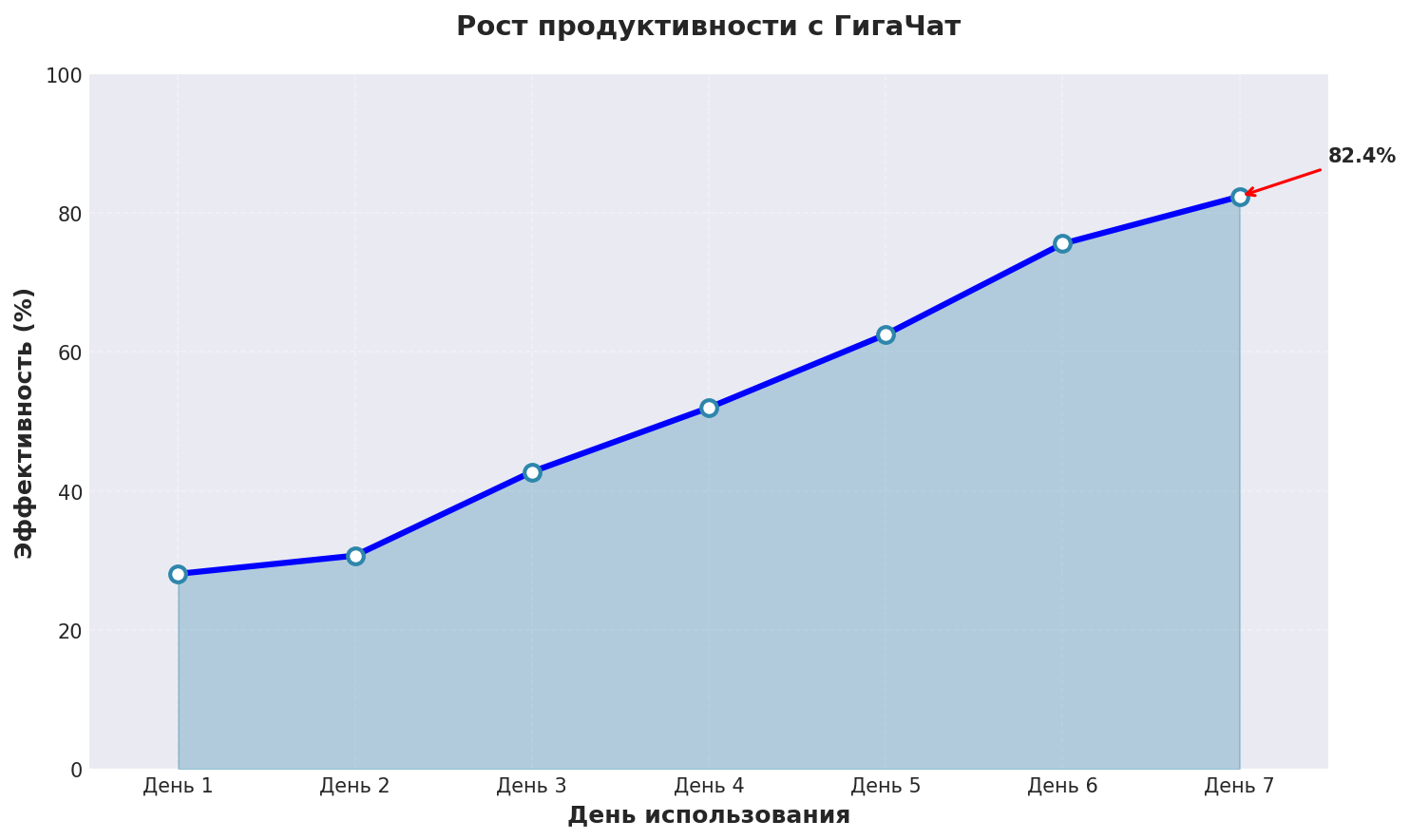 График показывает реальный рост эффективности нейросеть для общения при использовании ГигаЧат с применением описанных техник