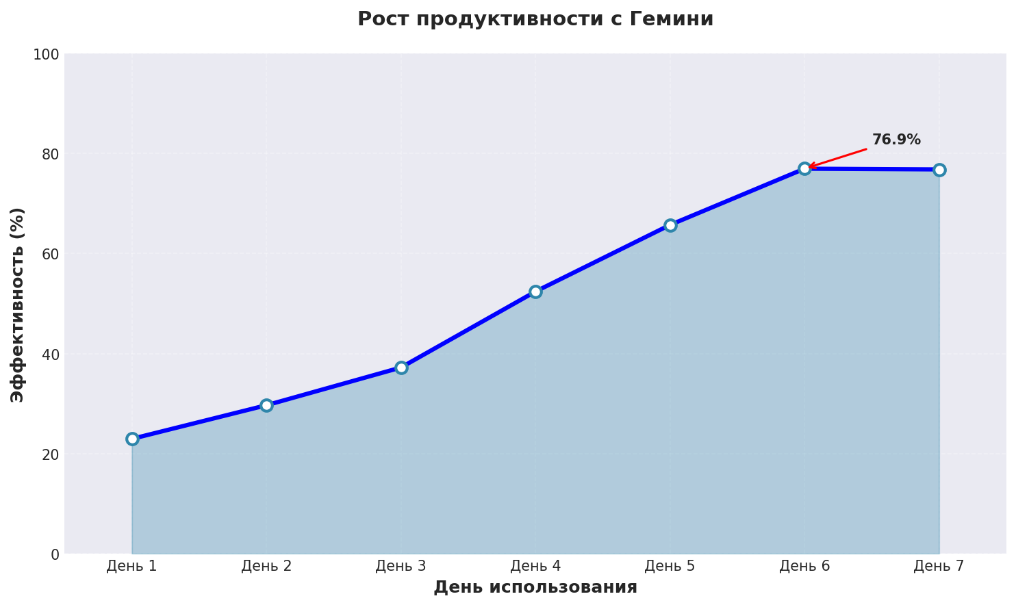 График показывает реальный рост эффективности запросы в нейросеть при использовании Гемини с применением описанных техник