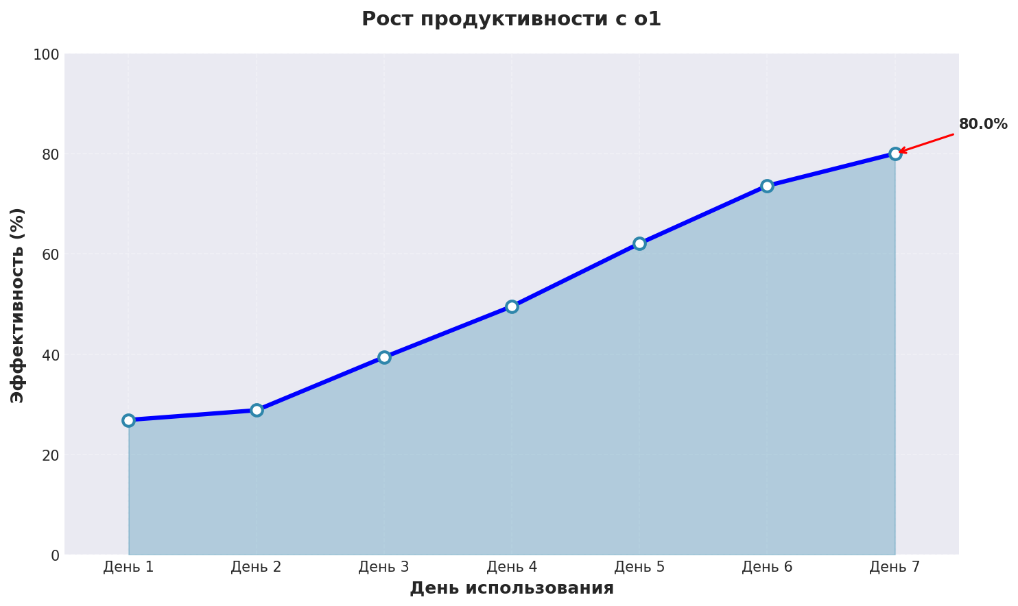 График показывает реальный рост эффективности написать текст с помощью нейросети при использовании o1 с применением описанных техник