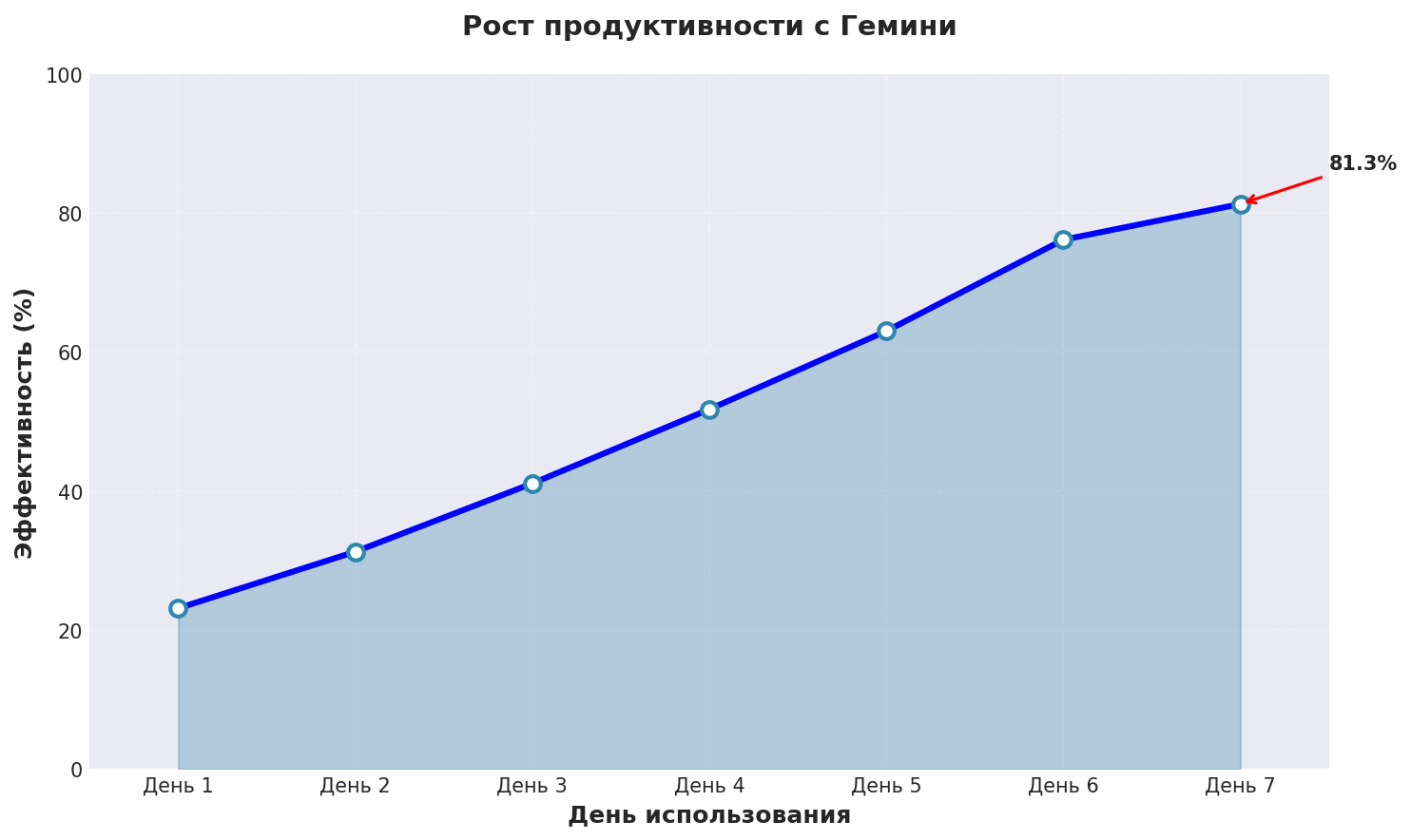 График показывает реальный рост эффективности нейросеть текст бесплатно без регистрации на русском при использовании Гемини с применением описанных техник