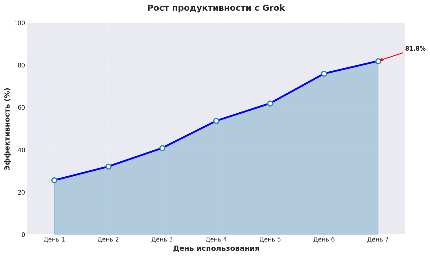 График показывает реальный рост эффективности составить текст в нейросети при использовании Grok с применением описанных техник