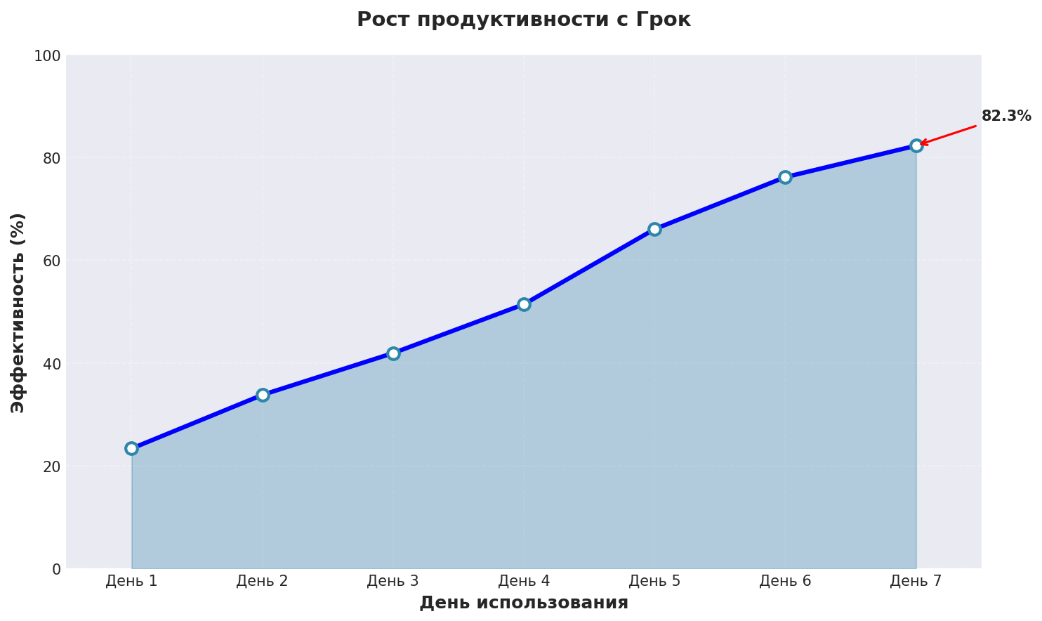 График показывает реальный рост эффективности нейросеть рассказ при использовании Грок с применением описанных техник